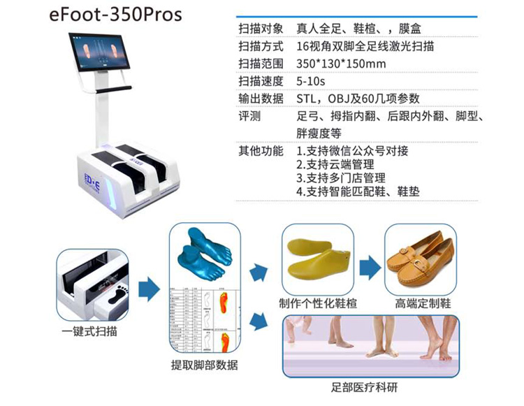 足部三维扫描仪 足底扫描仪 脚型扫描仪 足底压力分布测试 3D打印机 鞋垫雕刻机 手持式三维扫描仪 三维检测系统 3D机器视觉 拍照式三维扫描仪